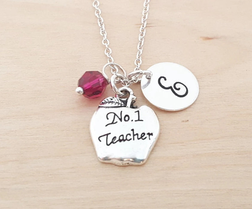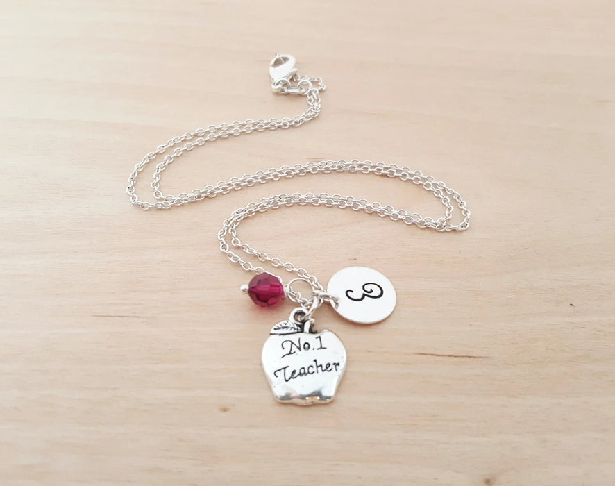 #1 Teacher Necklace – Sterling Silver Chain with Birthstone & Initial
