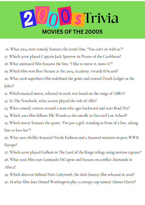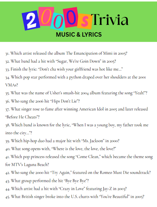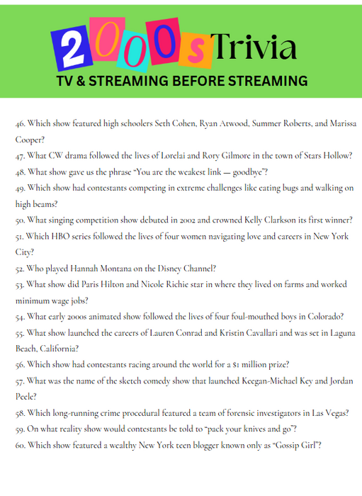 Get ready to throw it back with this fun and nostalgic 2000s Trivia Game!