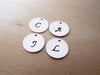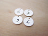 Add a hand stamped Sterling silver initial charm to any necklace, or purchase to make your own. This charm is hand stamped by me with a gorgeous uppercase Corsiva font, and hand painted to enhance the letter.