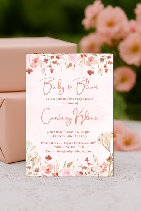 Baby in Bloom Baby Shower Invitation Bundle Printable