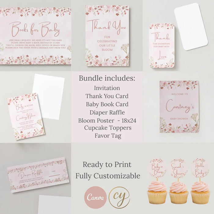 Celebrate your little one with our gorgeous blush floral themed baby shower bundle! πΈ