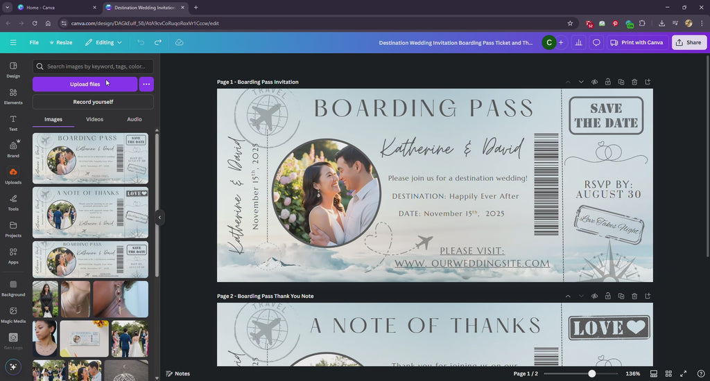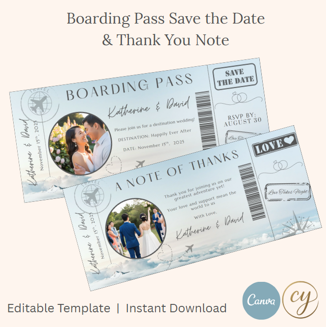 Boarding Pass Save the Date + Thank You Note Set βοΈ