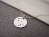 This dainty necklace is handcrafted featuring an adorable Sterling silver zodiac Gemini constellation charm. Attached to an 18 inch delicate Sterling silver chain with spring ring closure. Zodiac pendant measures 14mm in diameter.