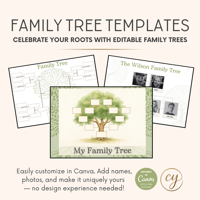 Celebrate your family roots with this beautiful set of editable family tree templates!