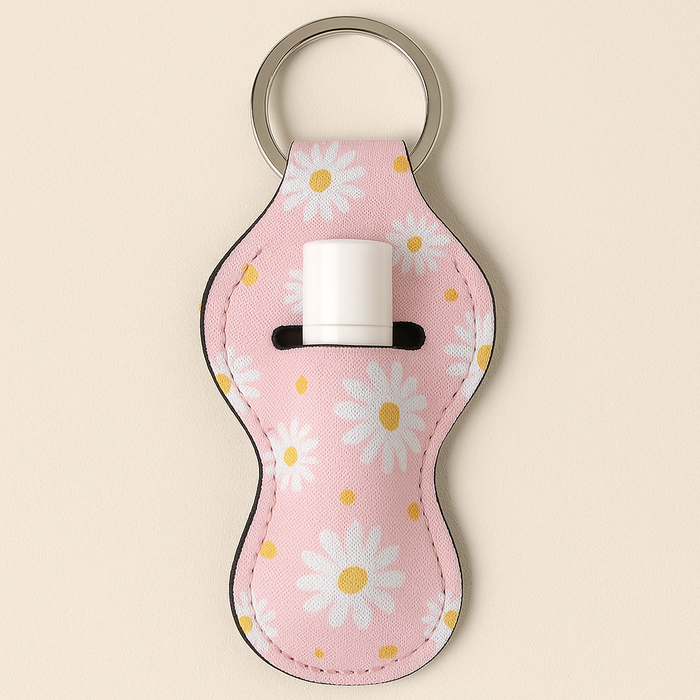 Brighten your day with our Full-Size Floral Chapstick Keyrings! Each keyring features a cheerful, all-floral design and fits standard-size chapsticks and lip balms. Compact at 4 inches, these keyrings add a pop of personality while keeping your lip balm within easy reach.