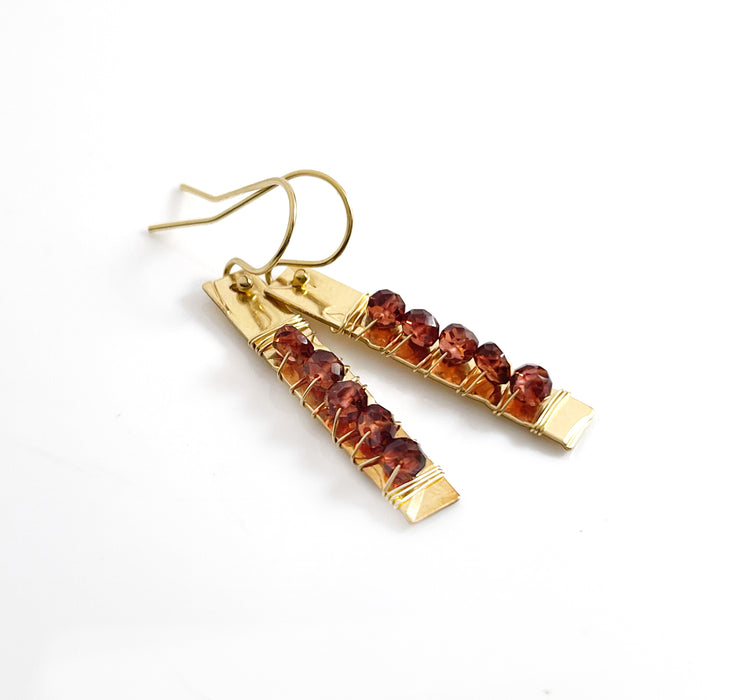 Gold-Filled Hammered Bar Earrings with Garnet (1.5") – One of a Kind