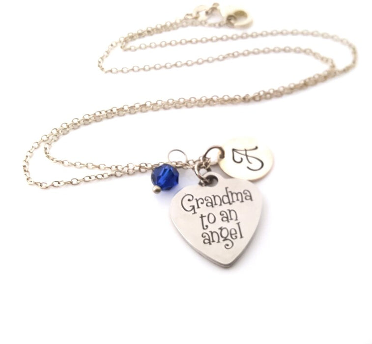 Grandma to an Angel Necklace – Sterling Silver Chain with Birthstone & Initial