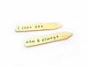 I Love You Custom Message Hand Stamped Brass Monogrammed Collar Stays / Gift for Him