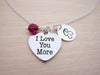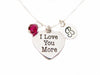 I Love You More Heart Necklace – Sterling Silver with Birthstone & Initial Charm