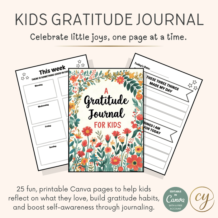 Kids Gratitude Journal – 25-Page Canva Template with Prompts & Reviews