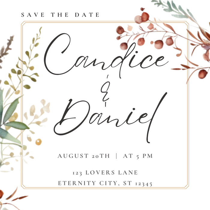 Celebrate love with this elegant and editable minimalist floral wedding invitation. Designed for Canva, this 5.5" x 5.5" square template features hand-painted botanical accents, delicate typography, and a refined layout—perfect for modern couples who appreciate understated beauty.