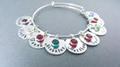 Mother's Birthstone and Name Disc Bangle Bracelet