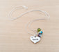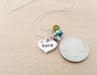 This necklace is handcrafted featuring a silver Nana heart charm, adorned by 1 - 4 Swarovski crystal birthstone charms, wire wrapped tightly by hand. Attached to a fine Sterling silver cable chain, made to your specified length.