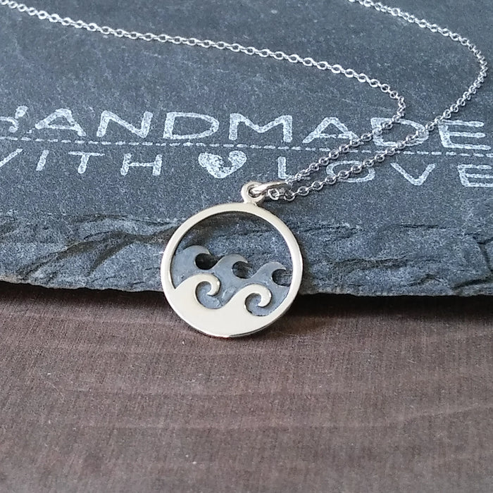 Ocean Waves Necklace – Sterling Silver Pendant on 18" Sterling Chain