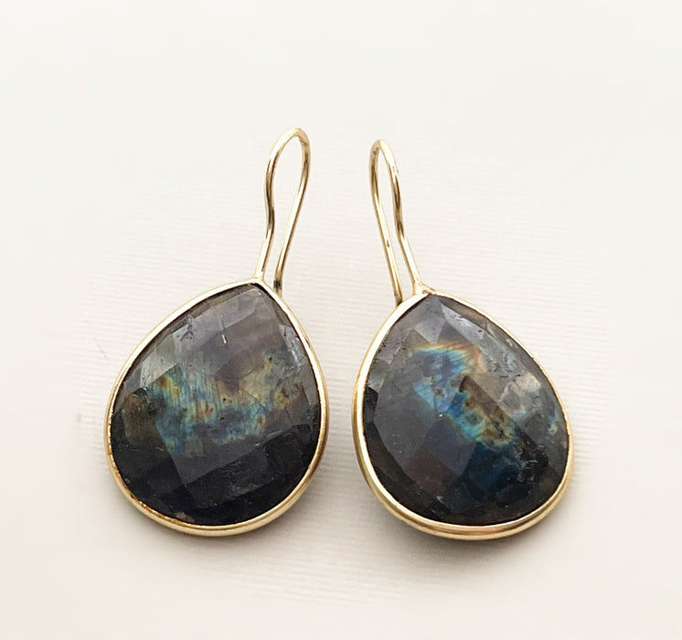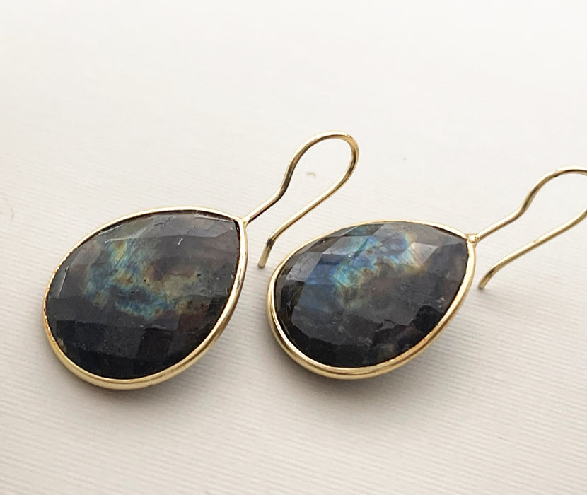 One of a Kind Labradorite Teardrop Earrings β Vermeil over Sterling