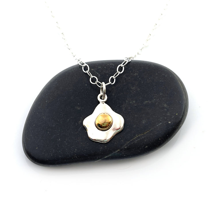 Over Easy Egg Necklace β Sterling Silver with Bronze Yolk, 18" Chain