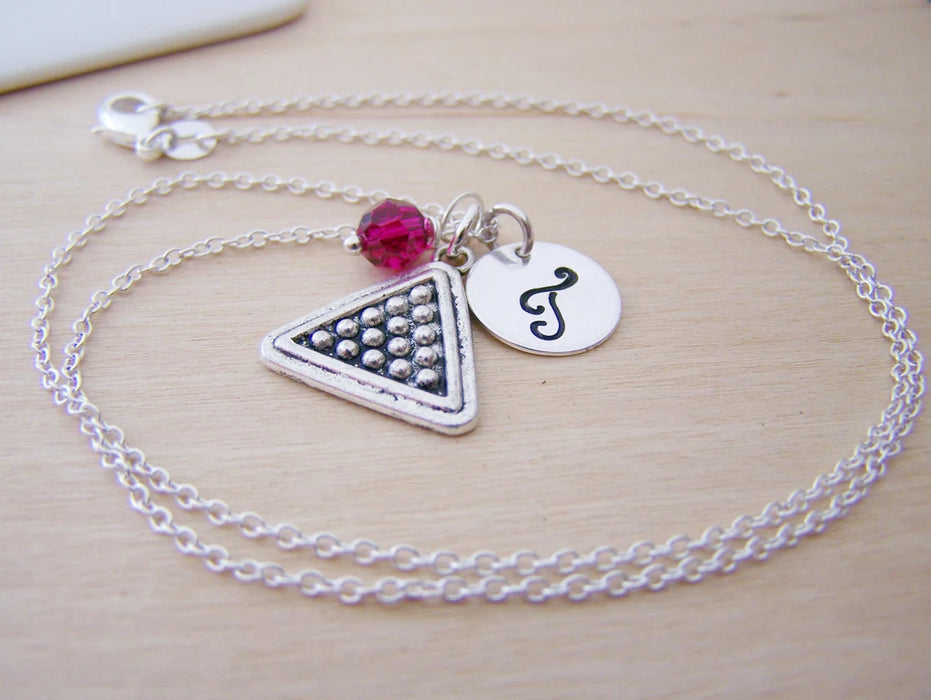 Personalized Billiards Necklace β Sterling Silver Chain, Birthstone & Initial