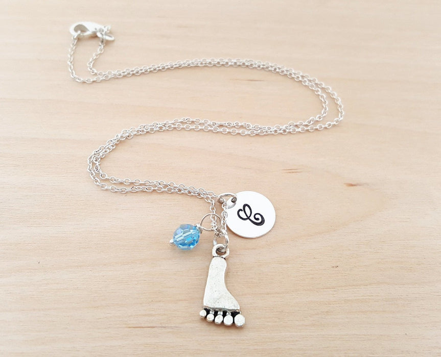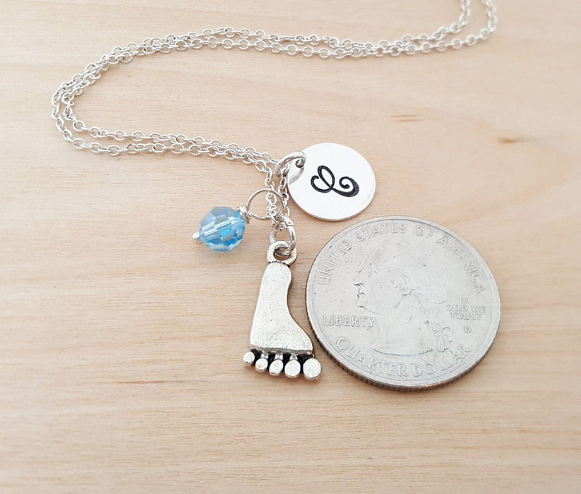 Personalized Sterling Silver Foot Charm Necklace β Custom Birthstone & Initial