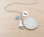 Personalization: Hand-stamped initial disc + Swarovski birthstone or freshwater pearl