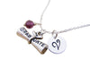 Personalized Sterling Silver Graduation Diploma Necklace – Initial & Birthstone