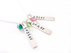 Personalized Three Names Hand Stamped Bar Swarovski Birthstone Necklace