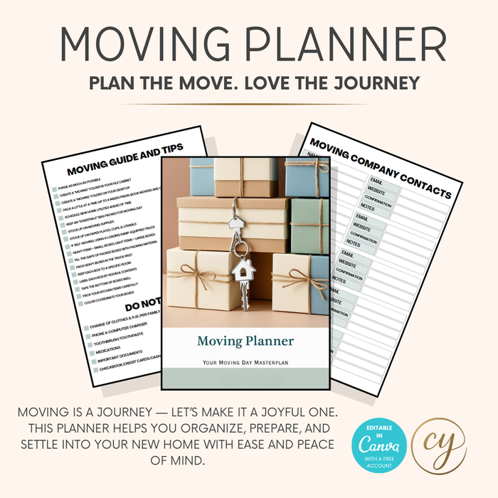 Moving doesn't have to be overwhelming. This 35-page editable Canva Moving Planner helps you organize every detailβfrom packing and budgeting to setting up your new space. Whether you're moving across town or cross-country, this planner is your sanity-saving sidekick.