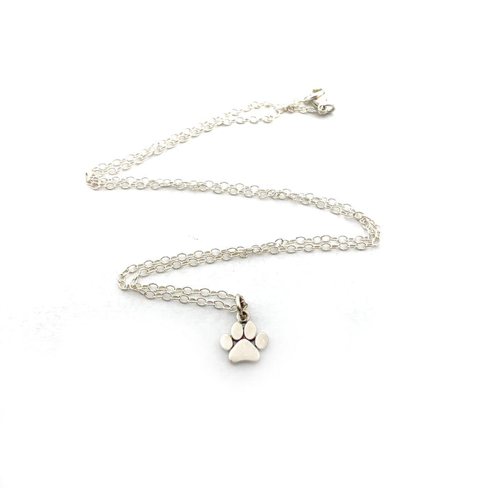 Paw Print Charm Necklace - Sterling Silver Jewelry