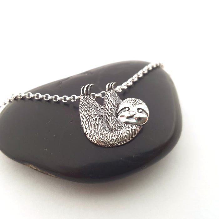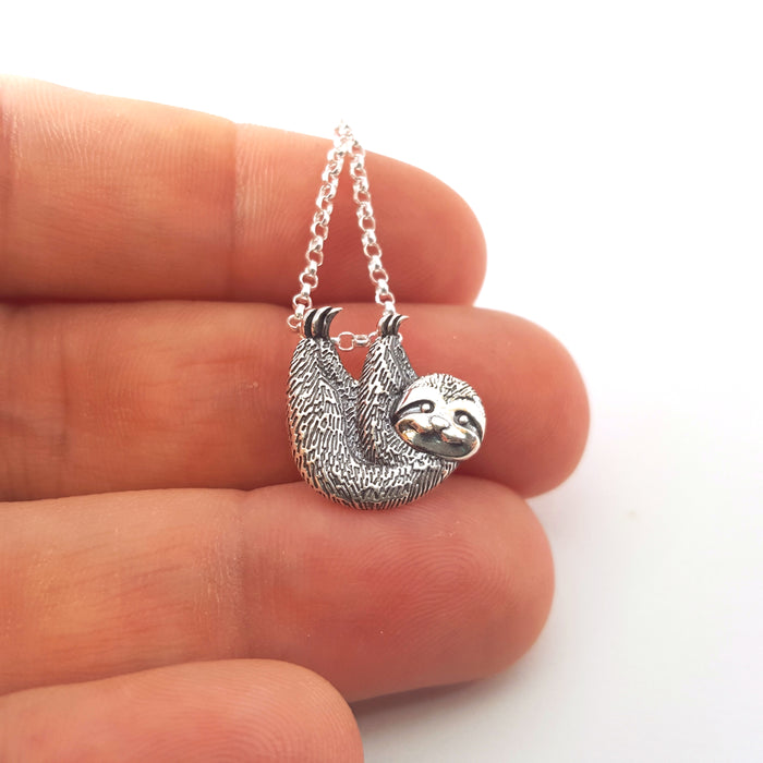 Sloth Charm Necklace - Sterling Silver - Animal Necklace - Gift for Her