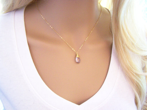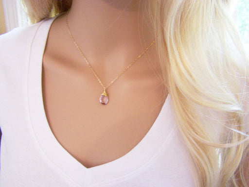 View full detailsLight Amethyst Gemstone Wire Wrapped Briolette Teardrop Necklace - Gold Filled Necklace - June Birthstone - Pink Amethyst Necklace