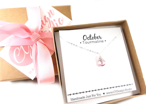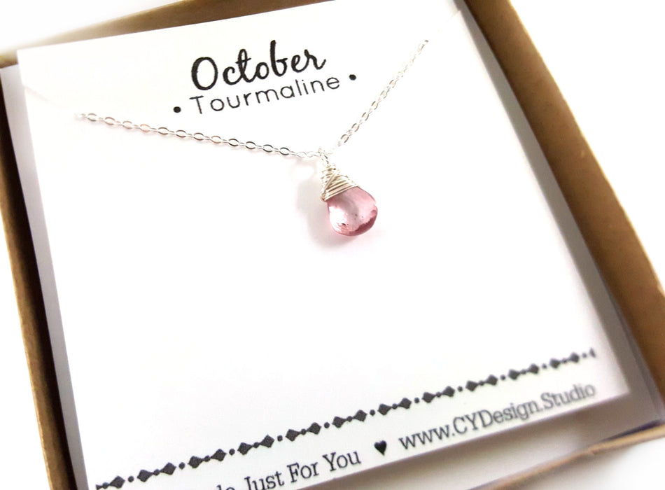 Pink Tourmaline - October Birthstone - Sterling Silver Necklace