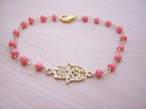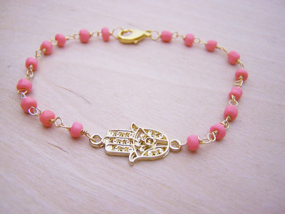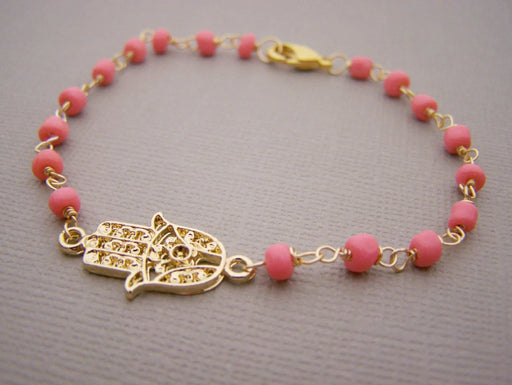View full detailsAqua Czech Glass Bead Rosary Bracelet β Gold Plated Chain, 7.5" Stacking Bracelet, Handmade in Raleigh