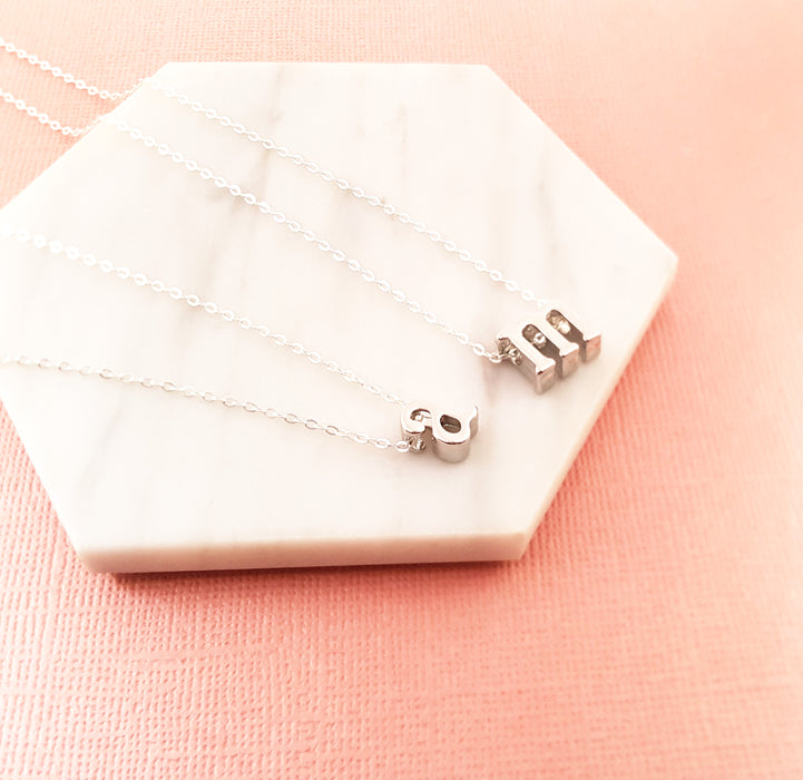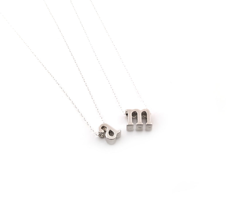Silver Slide Initial Necklace - Initial Necklace for Her - Alphabet Letter Charm Necklace
