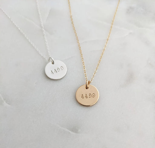 Police Wife Necklace β Hand Stamped Badge Number on 1/2" Disc, Gold or Silver, 18" Chain