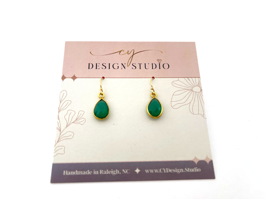 Dainty Green Onyx Drop 14k Gold Filled Earrings