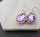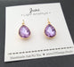 These earrings are handcrafted featuring sparkling teardrop birthstone crystals, set in gold plated bezels and attached to 14k gold filled ball ear wires. These earrings measure 1.25 inches long from top arch of ear wires. Earrings come with birthstone card insert.