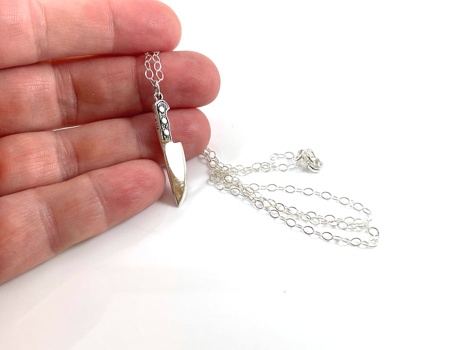 Chef's Knife Charm - Kitchen Cooking Pendant - Sterling Silver Necklace - Handmade Jewelry