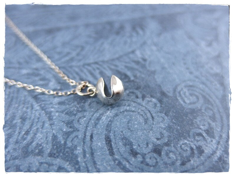 Fortune Cookie Charm Tiny Sterling Silver Necklace