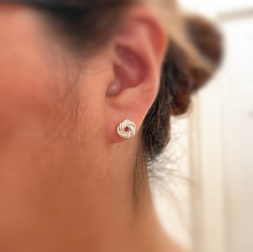 A classic symbol of connection, these sterling silver love knot studs are a timeless staple. At 11mm, theyβre just bold enough to catch the light, ...