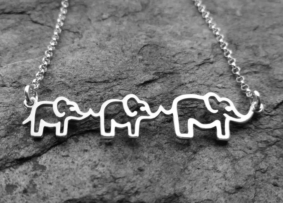 Celebrate the beautiful bond of motherhood with this Mama and Two Baby Elephant Necklace. Crafted from solid sterling silver, the design features a mama elephant leading two little ones trunk-to-tail—a heartwarming symbol of love, guidance, and family connection.