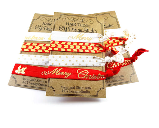 Christmas Holiday Gold Foil Hair Ties Set - Stocking Stuffer