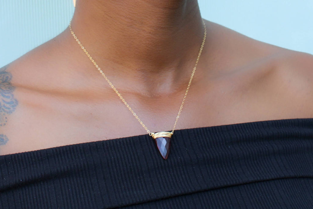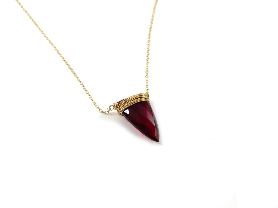 Add a touch of luxury to your wardrobe with our elegant Red Quartz Wire Wrapped Necklace. Handmade with a stunning red quartz stone and gold filled wire, this necklace exudes sophistication and exclusivity. At 18 inches long, it's the perfect length for any occasion, secured with a trendy spring ring clasp. Elevate any look with this must-have accessory.