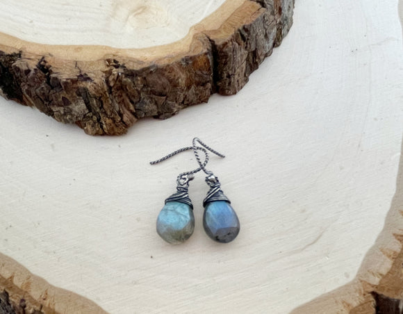 Mystical glow meets bold sparkle in these handcrafted gemstone earrings. Each pair features faceted labradorite teardrops with natural flashes of b...