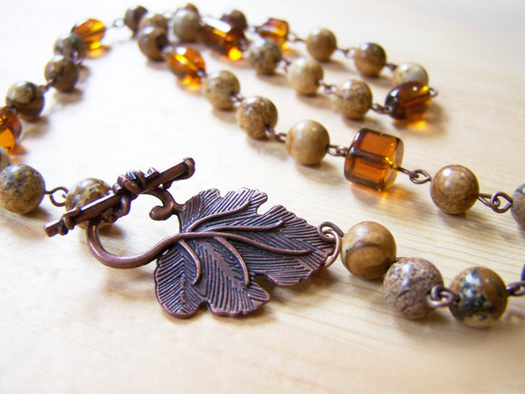 View full detailsChalcedony Briolette Necklace – 14k Gold Filled Wire Wrapped Statement Necklace with Czech Glass Beads (One of a Kind, 21”)