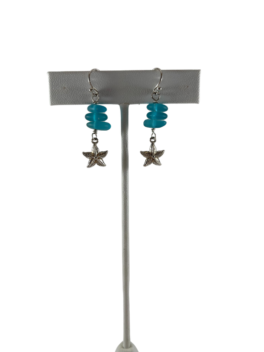 Blue Sea Glass Sterling Starfish Earrings