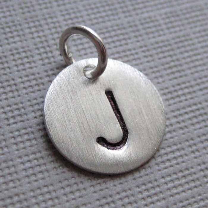 Design your own necklace by adding an INITIAL CHARM! This in anΒ 11mm round sterling silver charm with the sturdy sterling silver jump ring. The sterling silver charm is hand brushed and polished for a shiny and organic look.