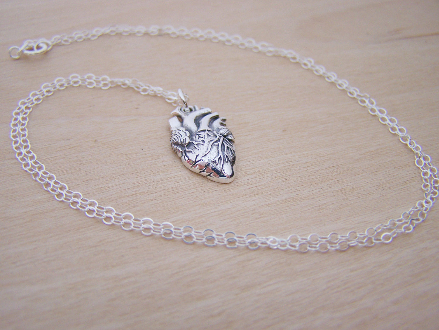 A meaningful piece for the romantics, the science lovers, or anyone drawn to the beauty of what makes us tick. This necklace features a finely detailed anatomical heart charm, symbolizing life, emotion, and strength. Each necklace is handcrafted to order using a shiny sterling silver cable chain and finished with a secure lobster clasp for everyday wear.