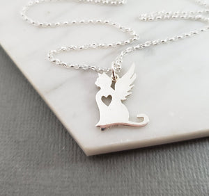Cat Angel Wing Charm - Sympathy Pet Loss Charm - Sterling Silver Necklace