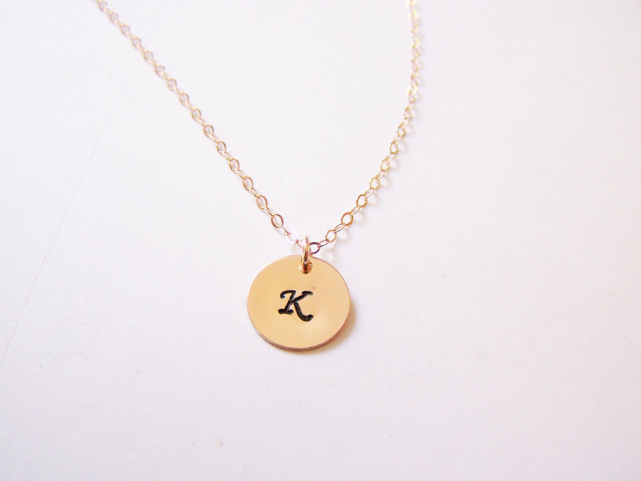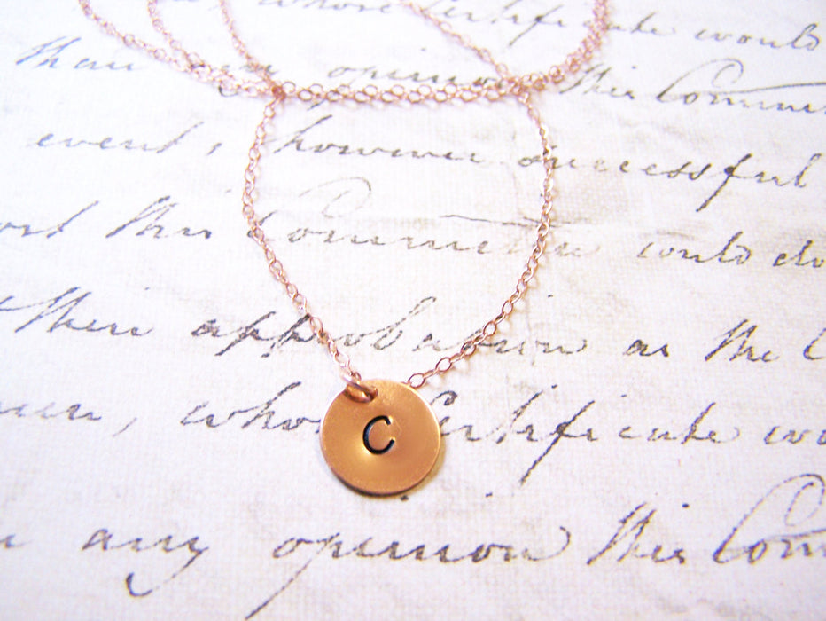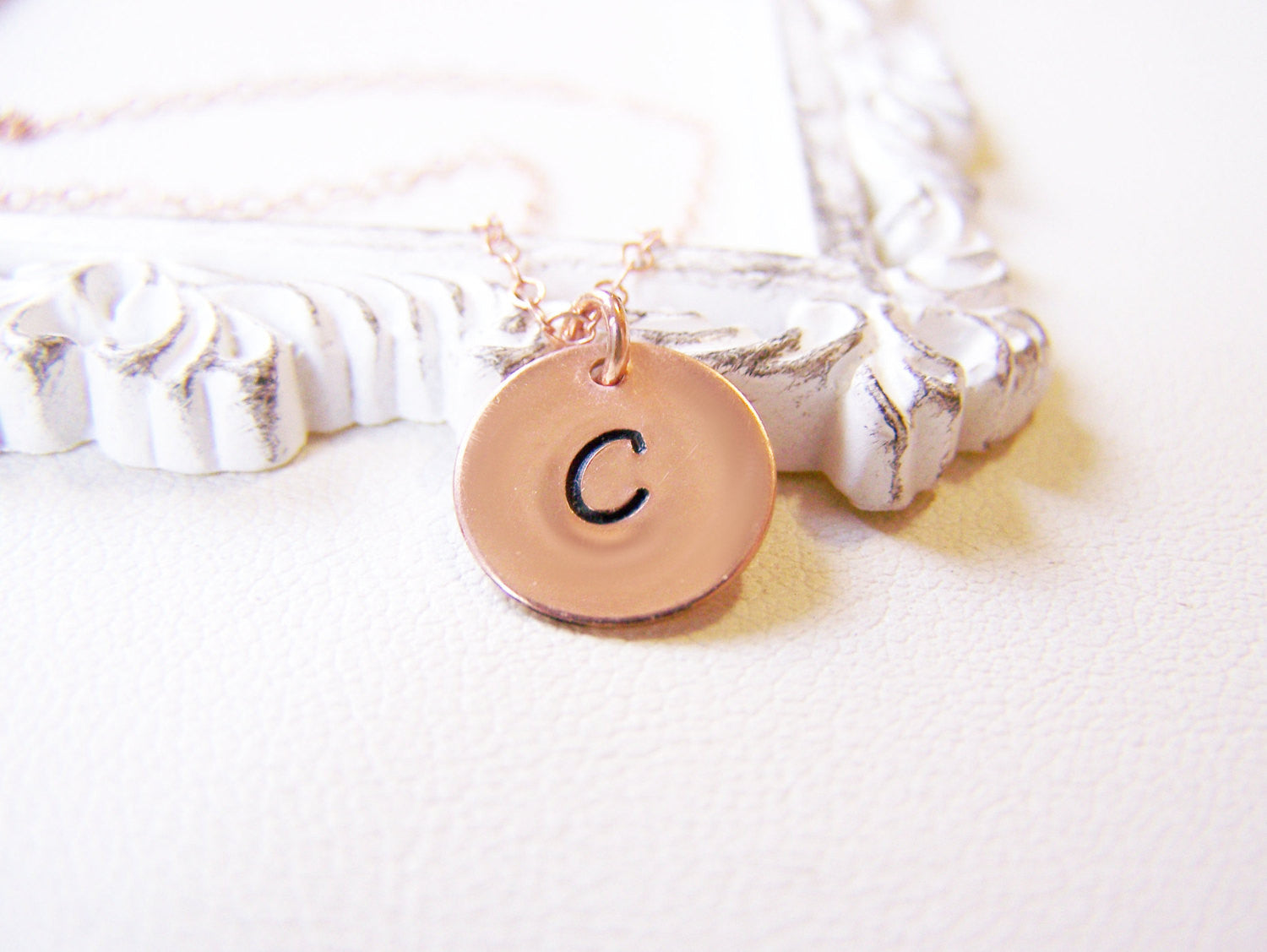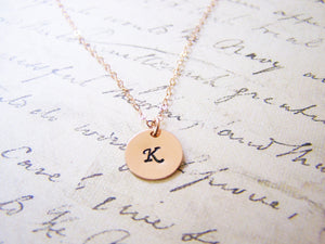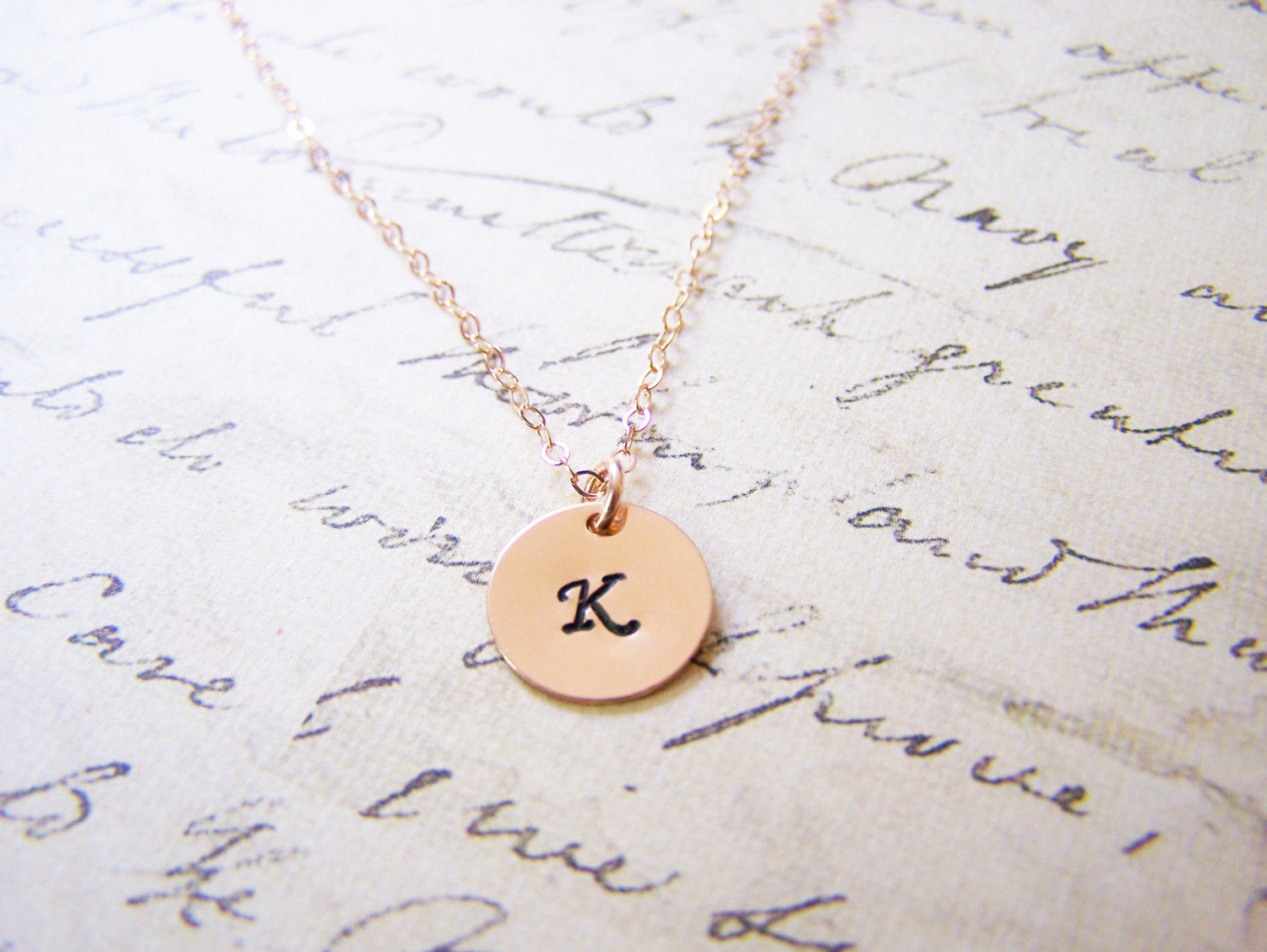 Handstamped Initial Disc Monogrammed 14k Rose Gold Filled Personalized Necklace