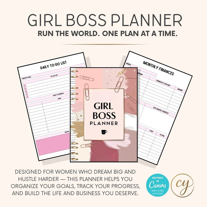 Girl Boss Planner | 60+ Pages Printable & Editable in Canva