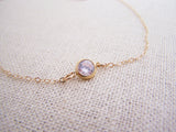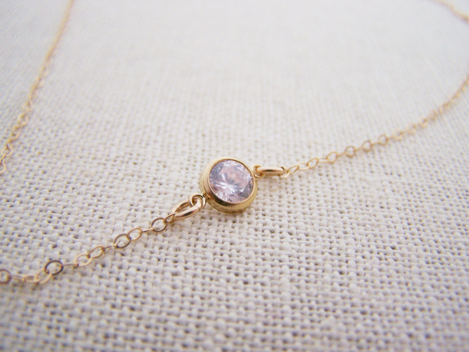 This necklace is handcrafted featuring a stunning, sparkling cubic zirconia. Made with dainty 14k yellow gold filled cable chain, this choker style necklace measures 15 inches long with secure spring ring clasp. CZ diamond charm measures 5mm in diameter.